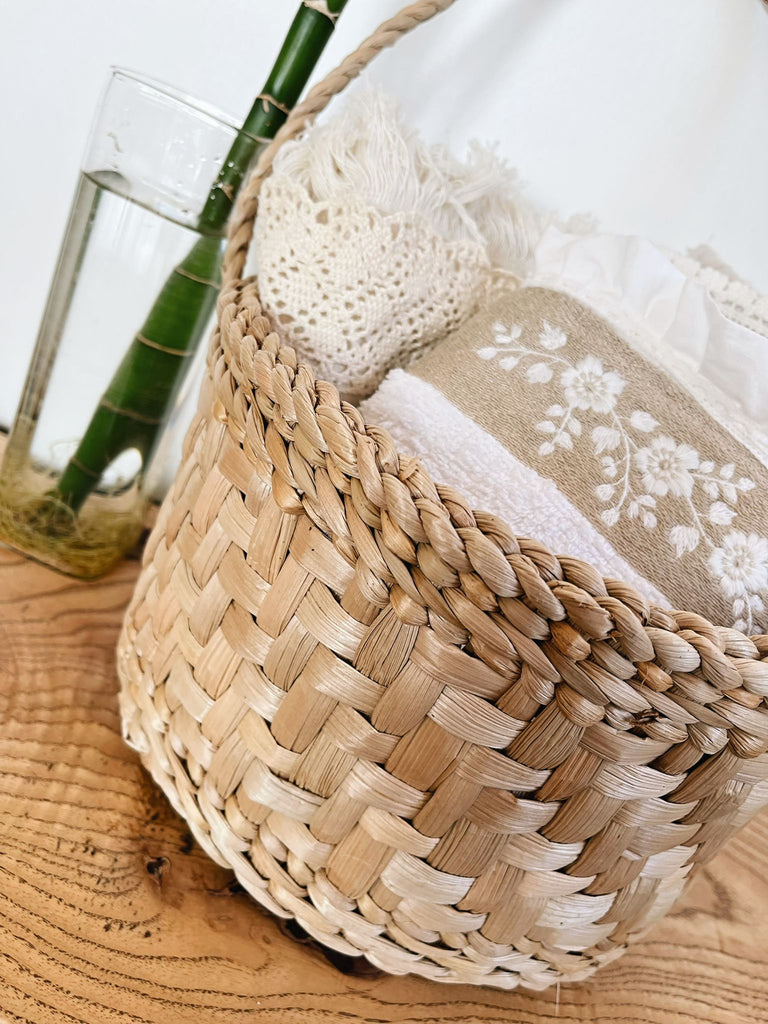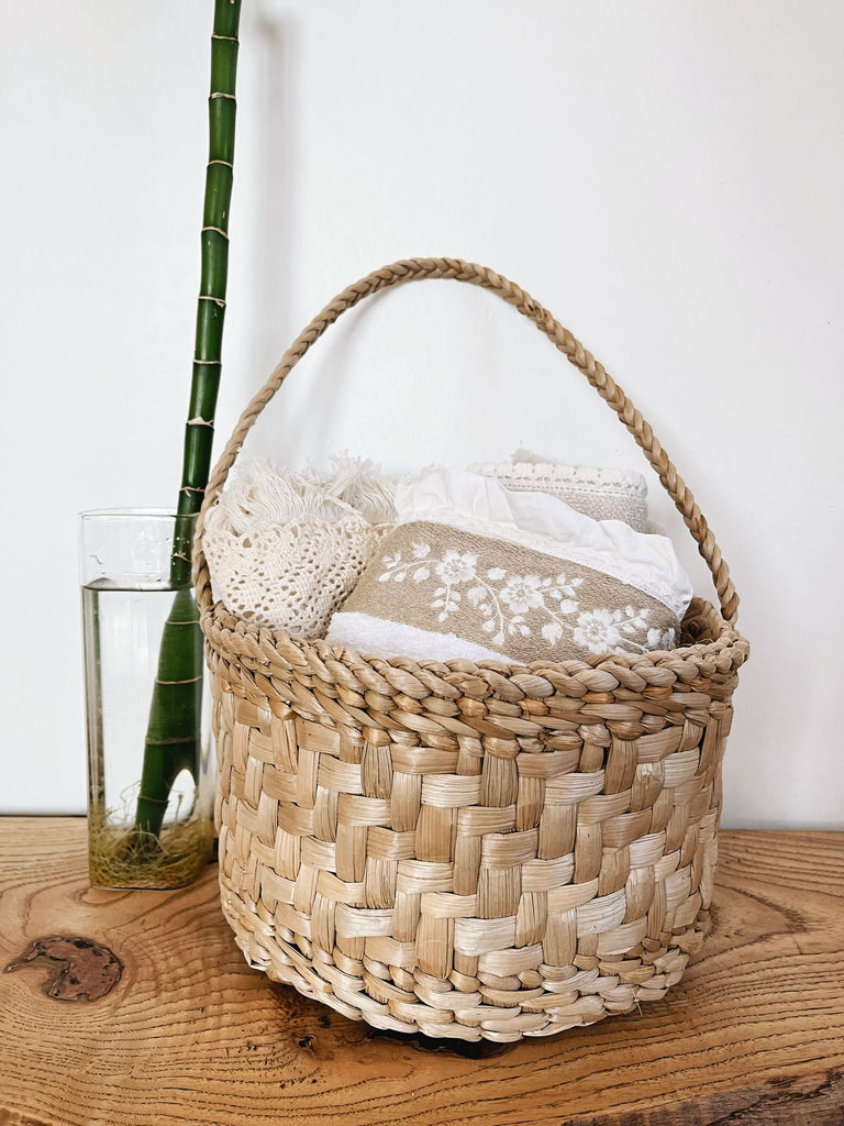 Handgefertigte Flaschenhülle aus Korbgeflecht