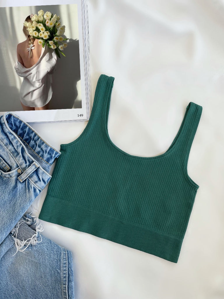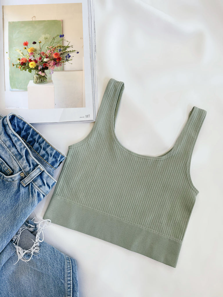 Nahtloses, geripptes Crop-Top in Grün