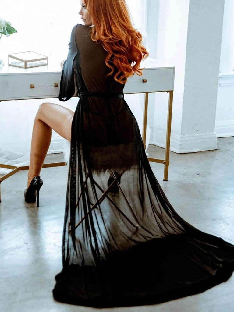 Langer Tüll-Morgenmantel, Nachthemd und Unterwäsche