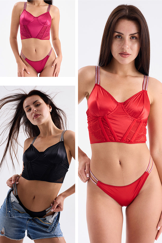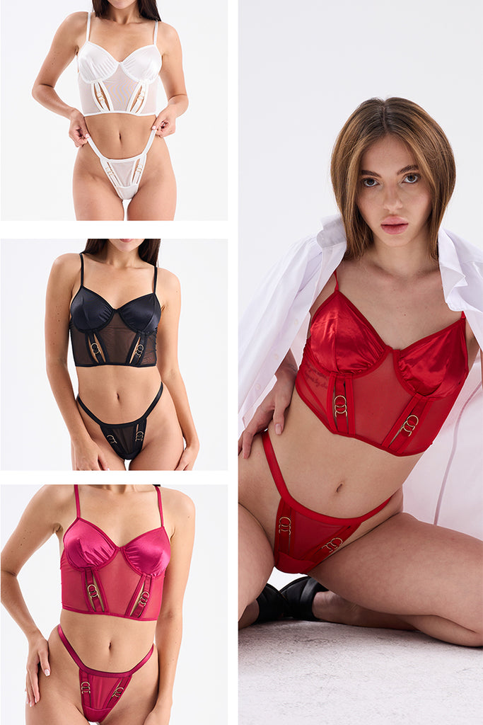 Halka Detaylı Dantelli Bralet Set Kırmızı