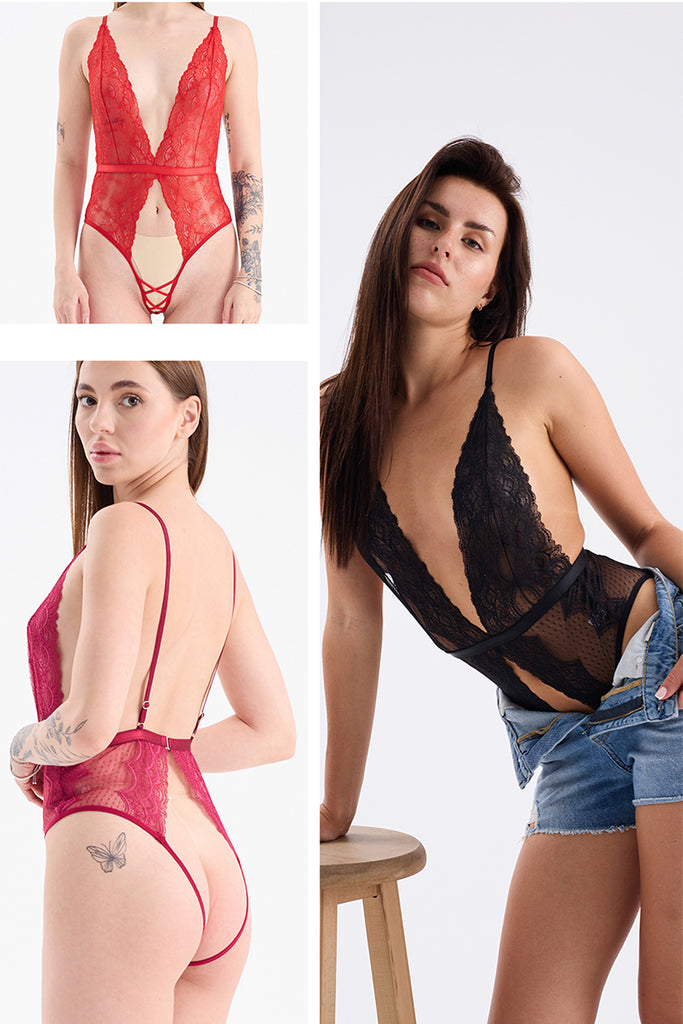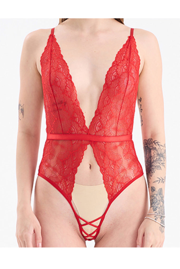 Dantel Tetaylı Kırmızı Bodysuit_ll_9157