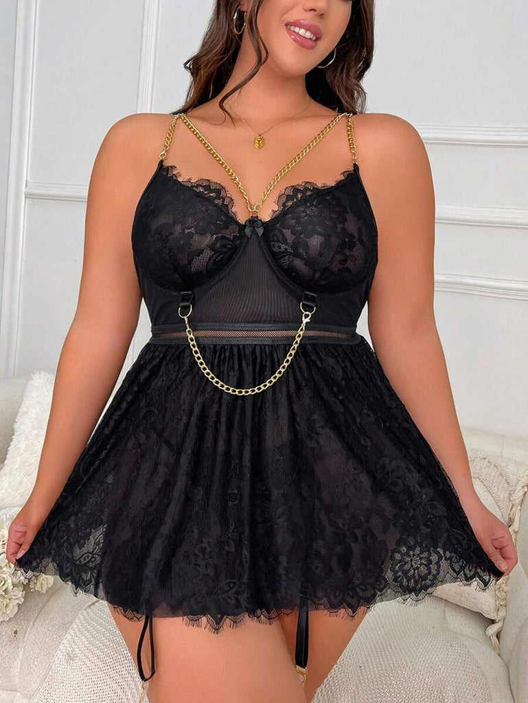 Saten Dantel ve Tül Detaylı Siyah Set_ll_9158