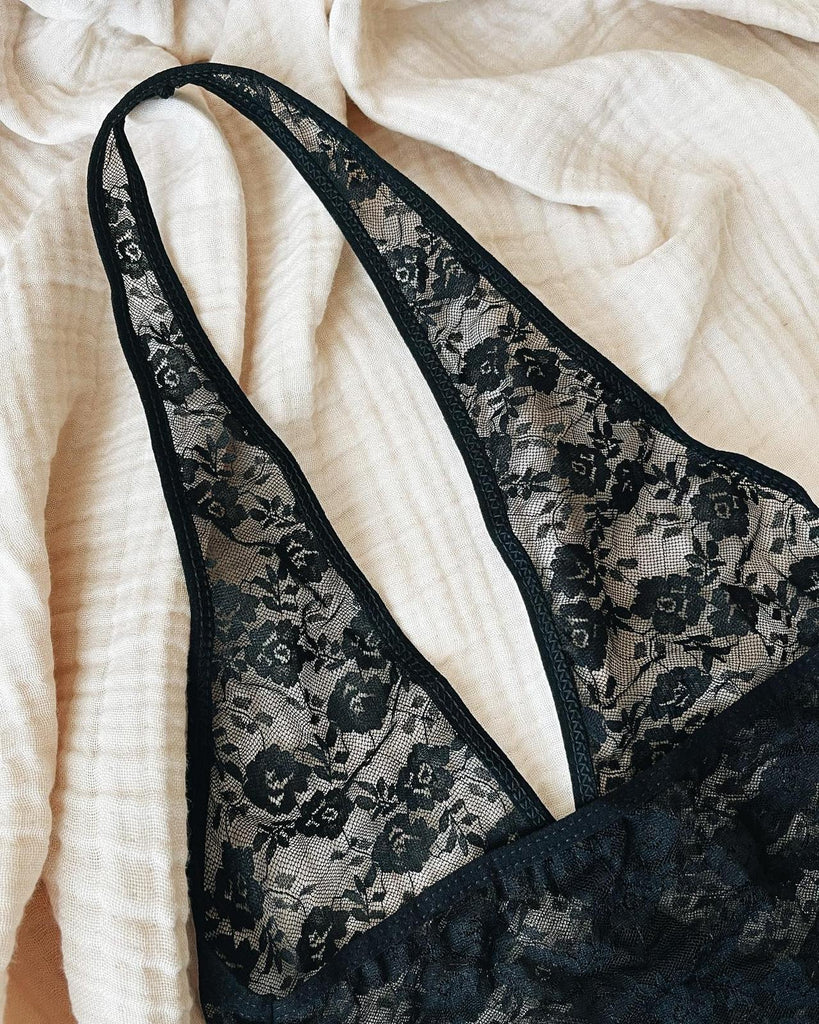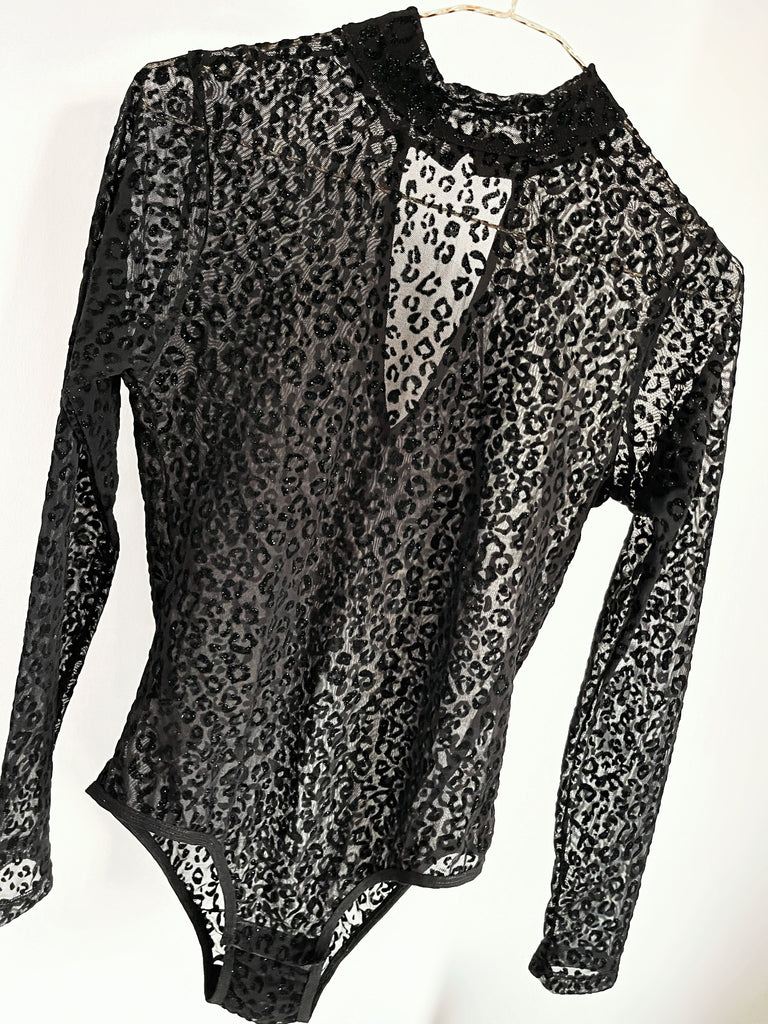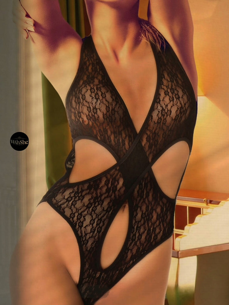 Çiçek Detaylı Transparan Siyah Bodysuit