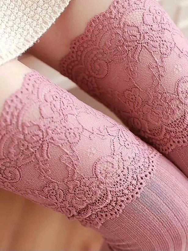 Dantel Pembe Diz Üstü Koton Çorap