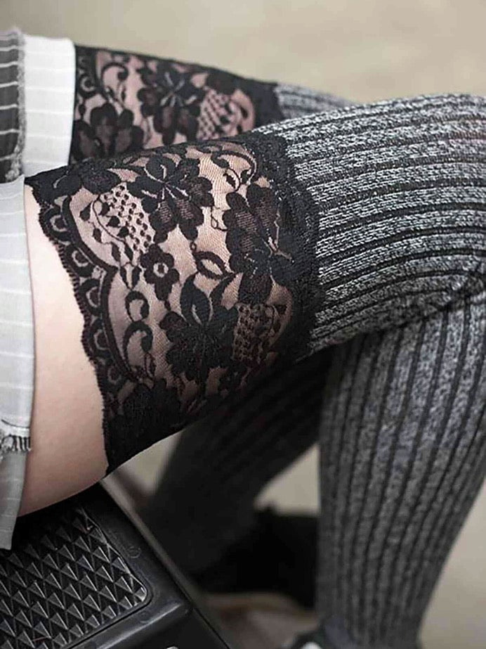 Dantel Gri Diz Üstü Koton Çorap