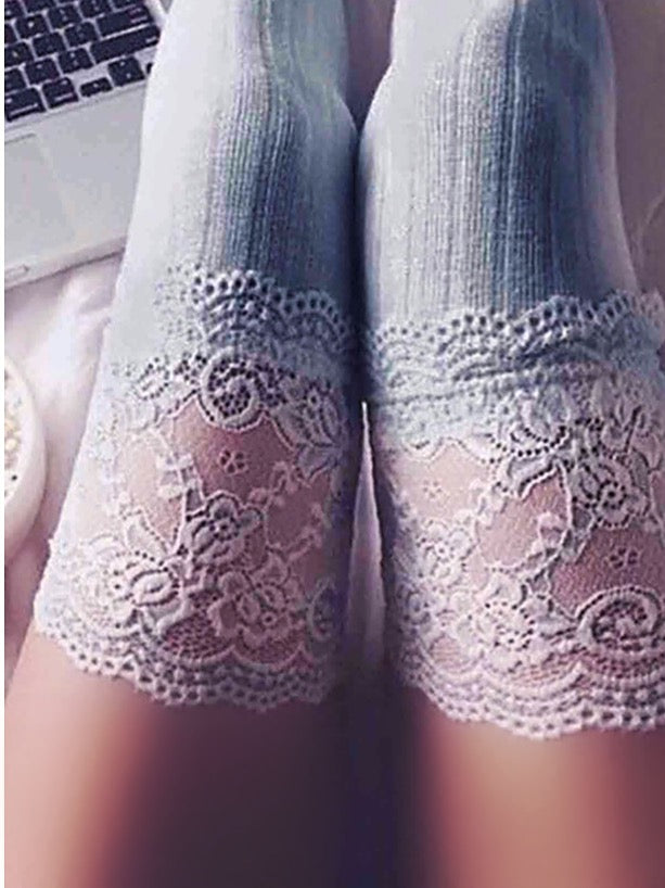 Dantel Diz Üstü Koton Çorap