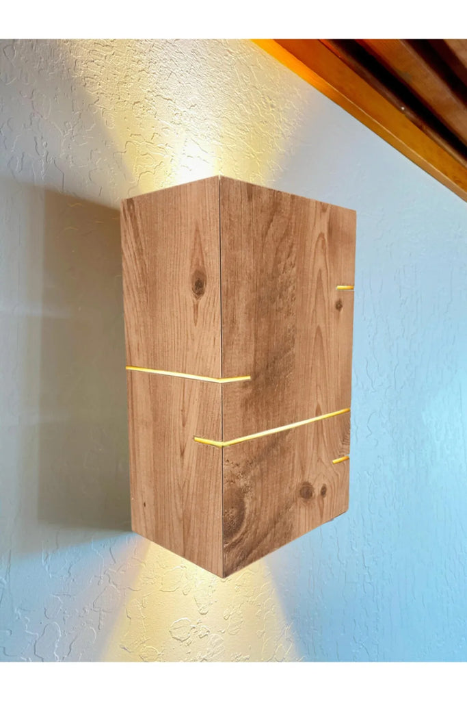 Koyu Kahve Ahşap Duvar Lambası Aplik Dekoratif Tasarım Aydınlatma Ev Iş Yeri Çeşitli Kullanım Alanı