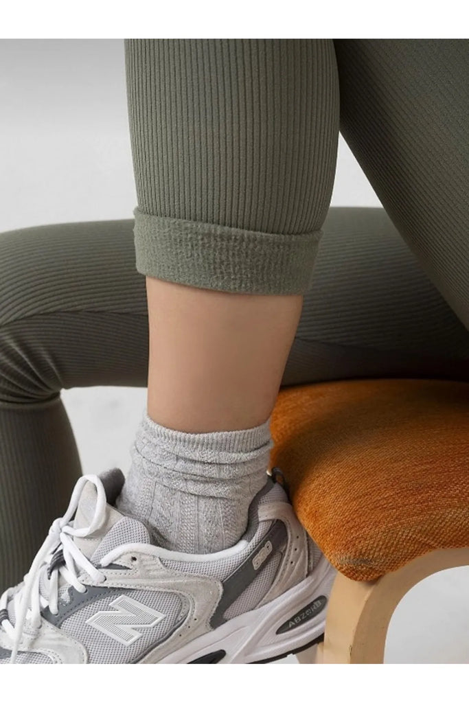 Yeşil İçi Polarlı, Lastikli, Şardonlu, Fitilli, Toparlayıcı Interlok Kışlık Örme Tayt