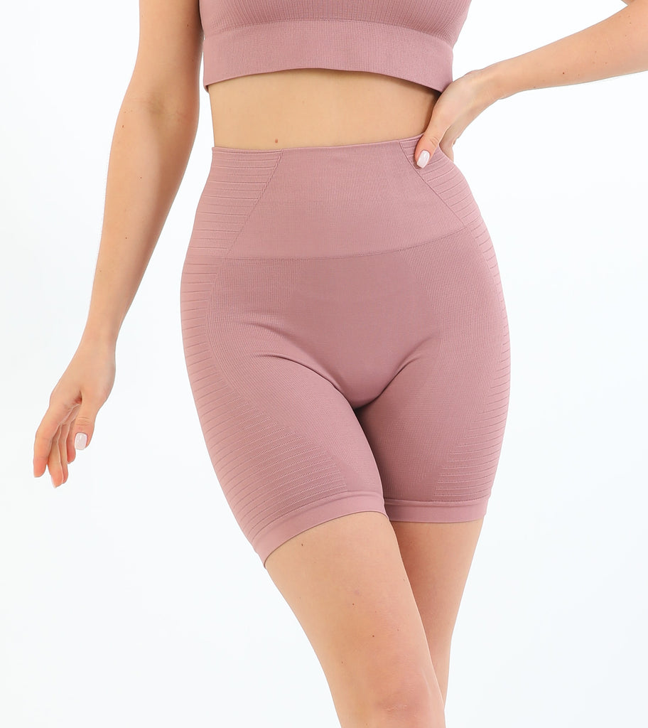 Dikişsiz Korseli Biker Tayt Gül Kurusu