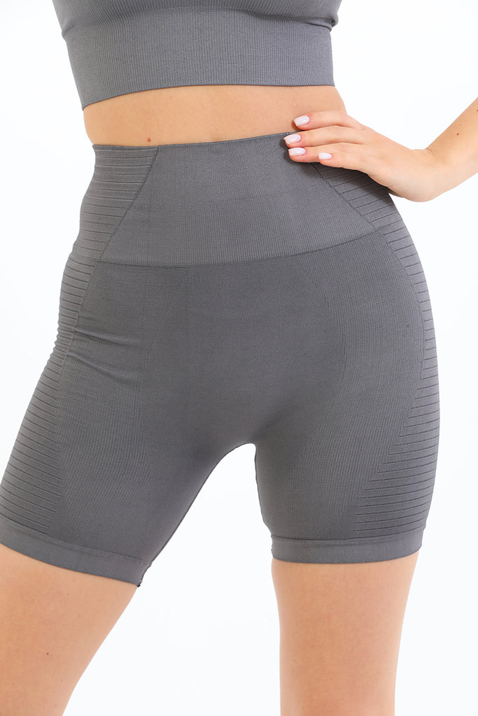 Dikişsiz Korseli Biker Tayt Füme