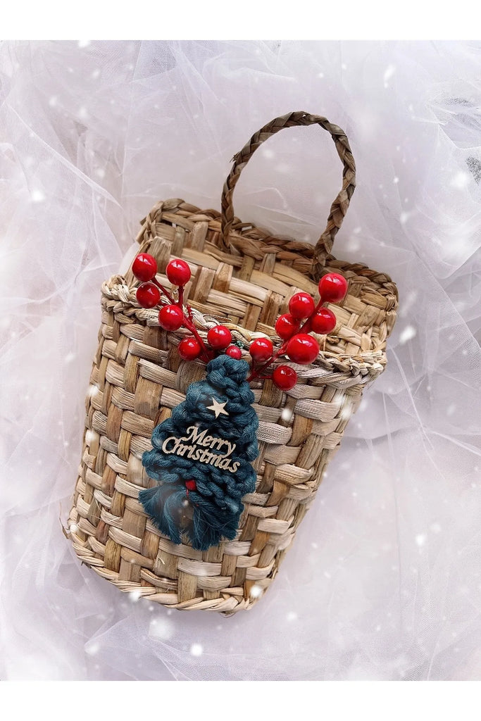 Kapı Süsü Hediyelik Hasır Sepet Yeni Yıl Hediyesi