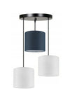 3lü Beyaz Lacivert Beyaz Silindir Kumaş Abajur Sarkıt Avize Modern Dekoratif Tasarım