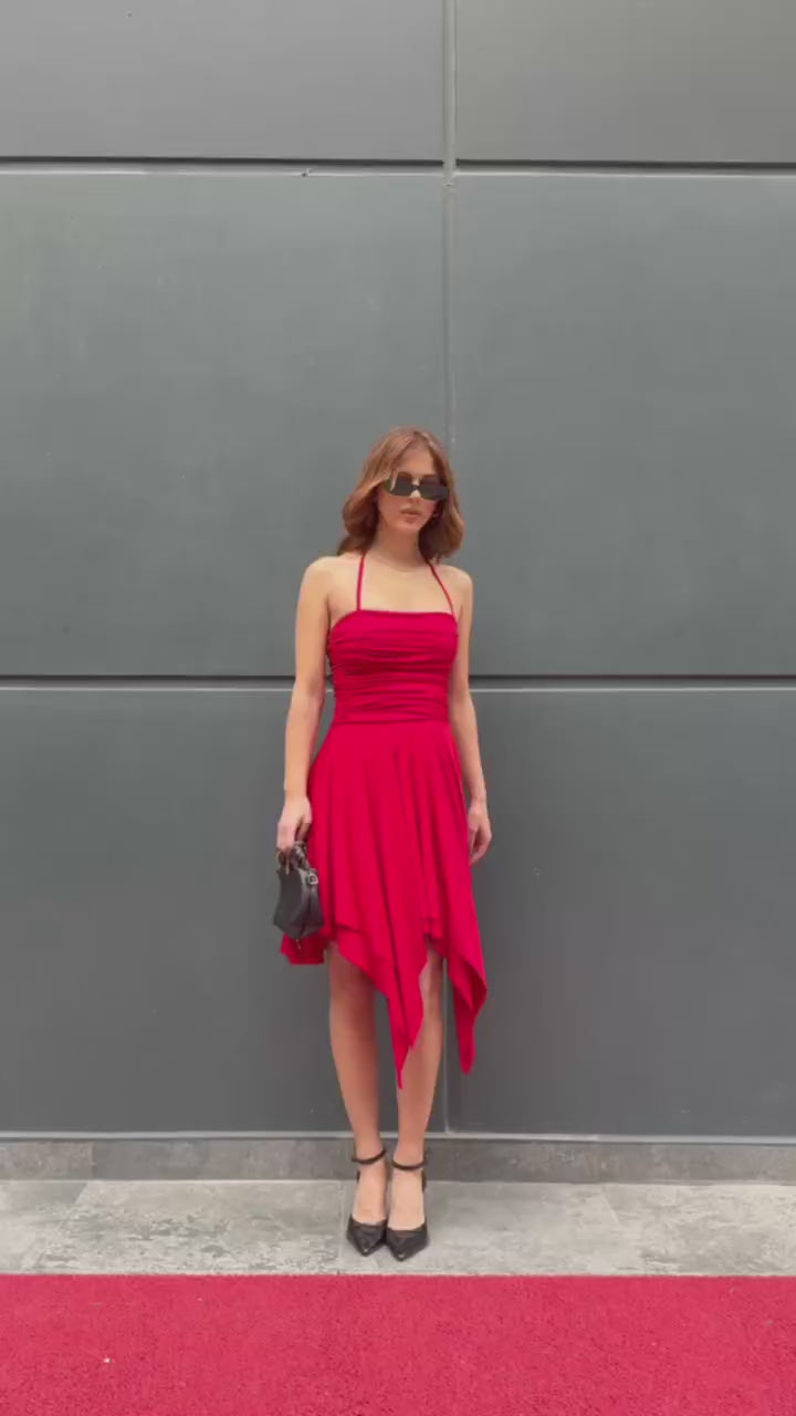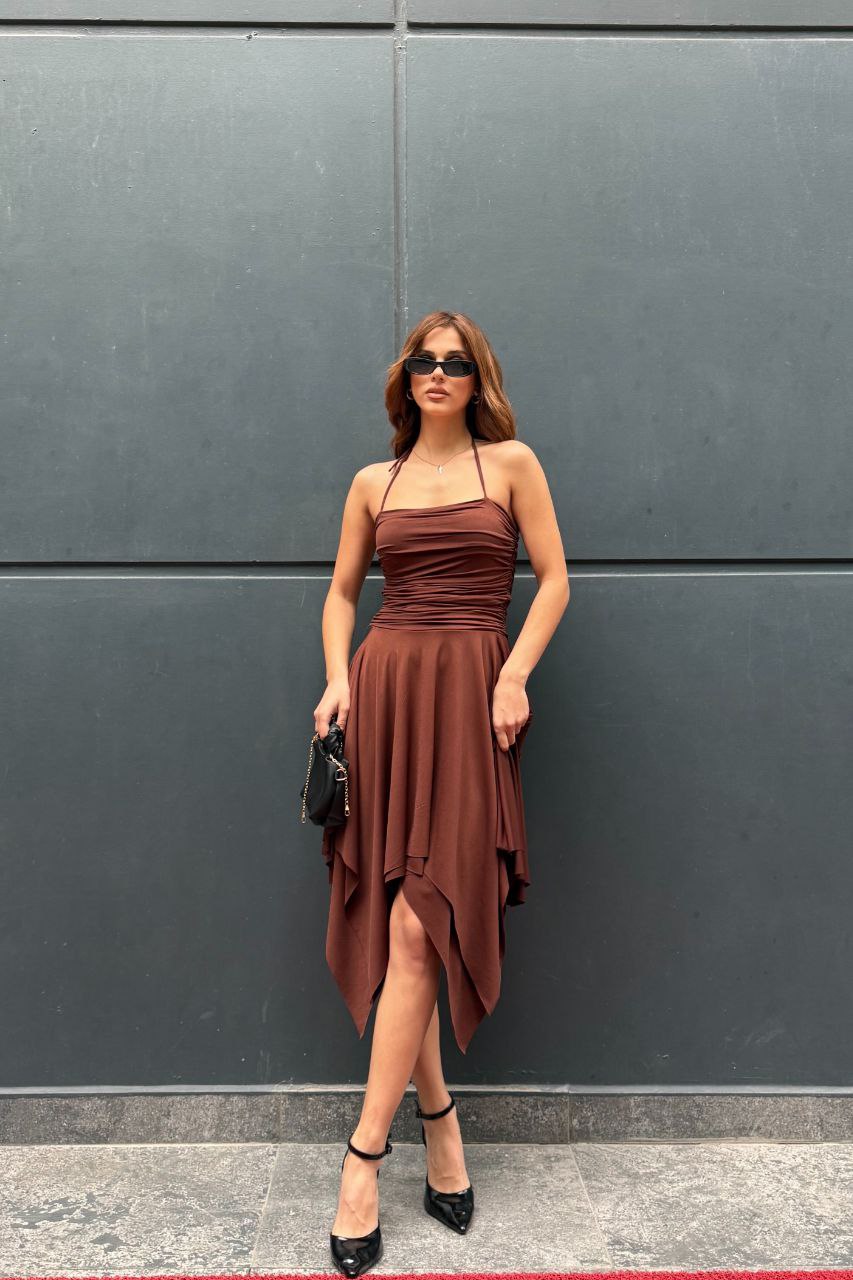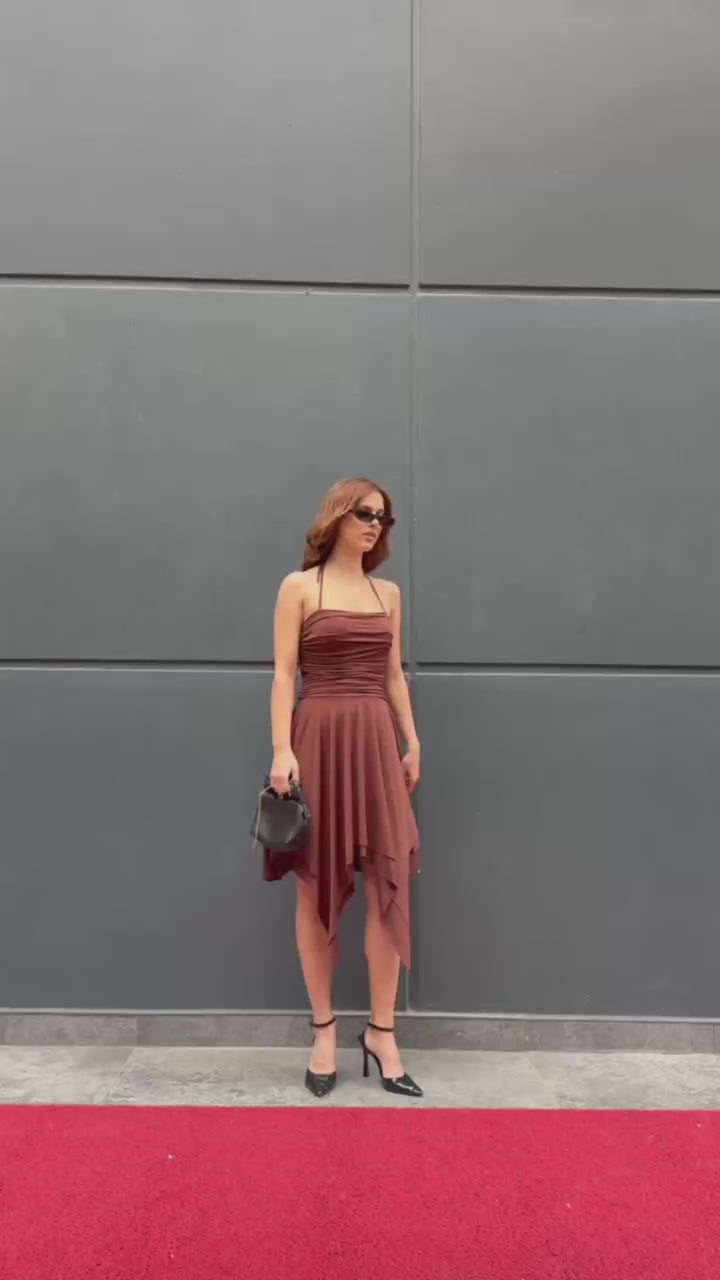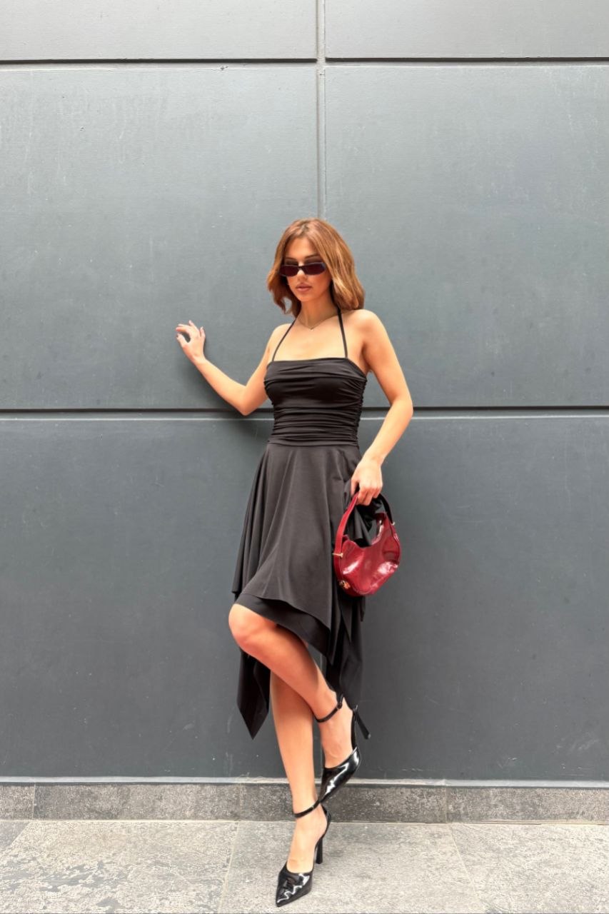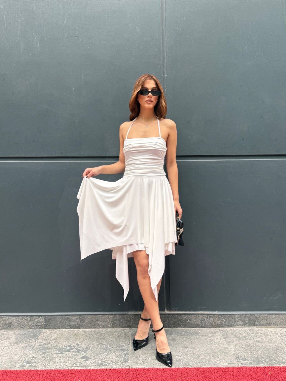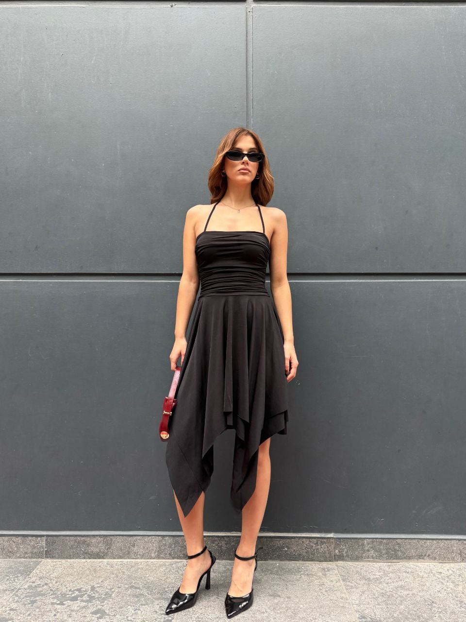 Asimetrik Kesim Halter Yaka Elbise 1175