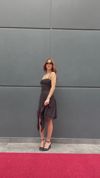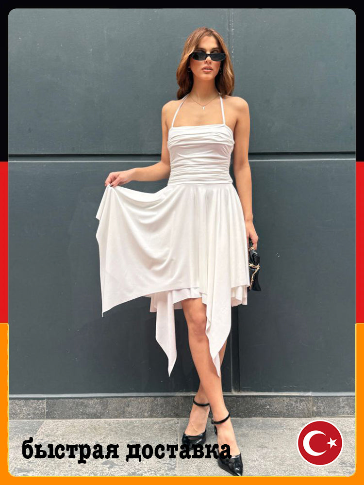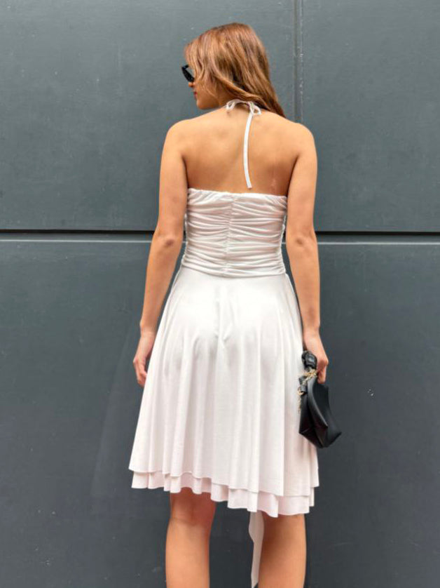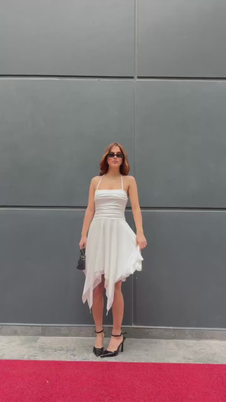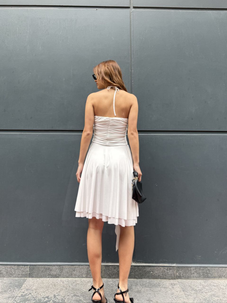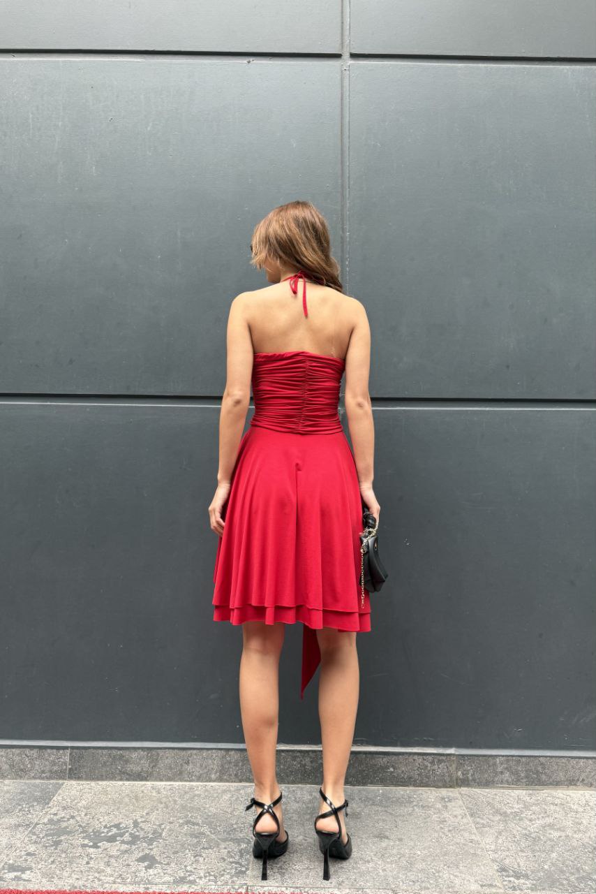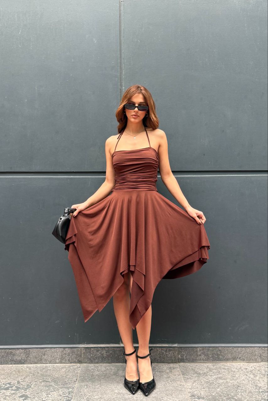 Asimetrik Kesim Halter Yaka Elbise 1175