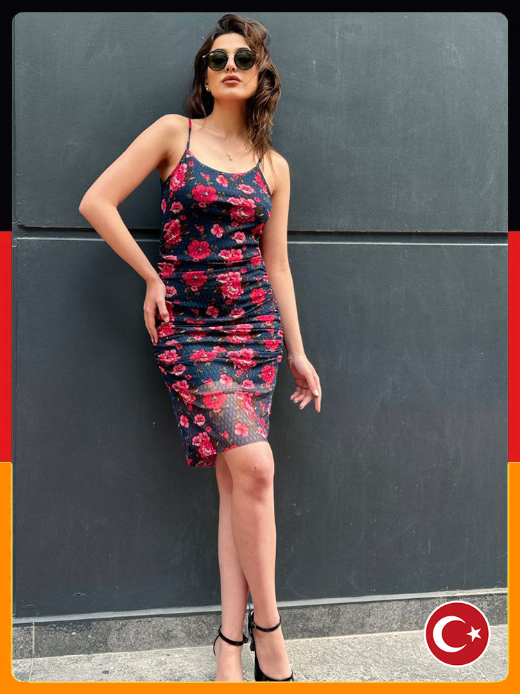 Askılı çiçek desenli kadın elbise, zarif silueti ve feminen duruşuyla özel ve günlük kombinleriniz için mükemmel bir tercihtir. Vücuda oturan kalıbı sayesinde hatları güzel bir şekilde vurgular, esnek ve hafif kumaşı gün boyu konforlu bir kullanım sunar. Modern çiçek deseni elbiseye canlı ve şık bir görünüm kazandırırken, midi boy kesimi hem rahat hem de elegan bir stil oluşturur. Davetler, akşam yemekleri, tatiller ve şehir hayatı için ideal olan bu elbise; topuklu ayakkabı veya sandaletlerle kolayca kombinlenebilir. Zamansız tasarımı sayesinde her mevsim gardırobunuzun favori parçası olur.