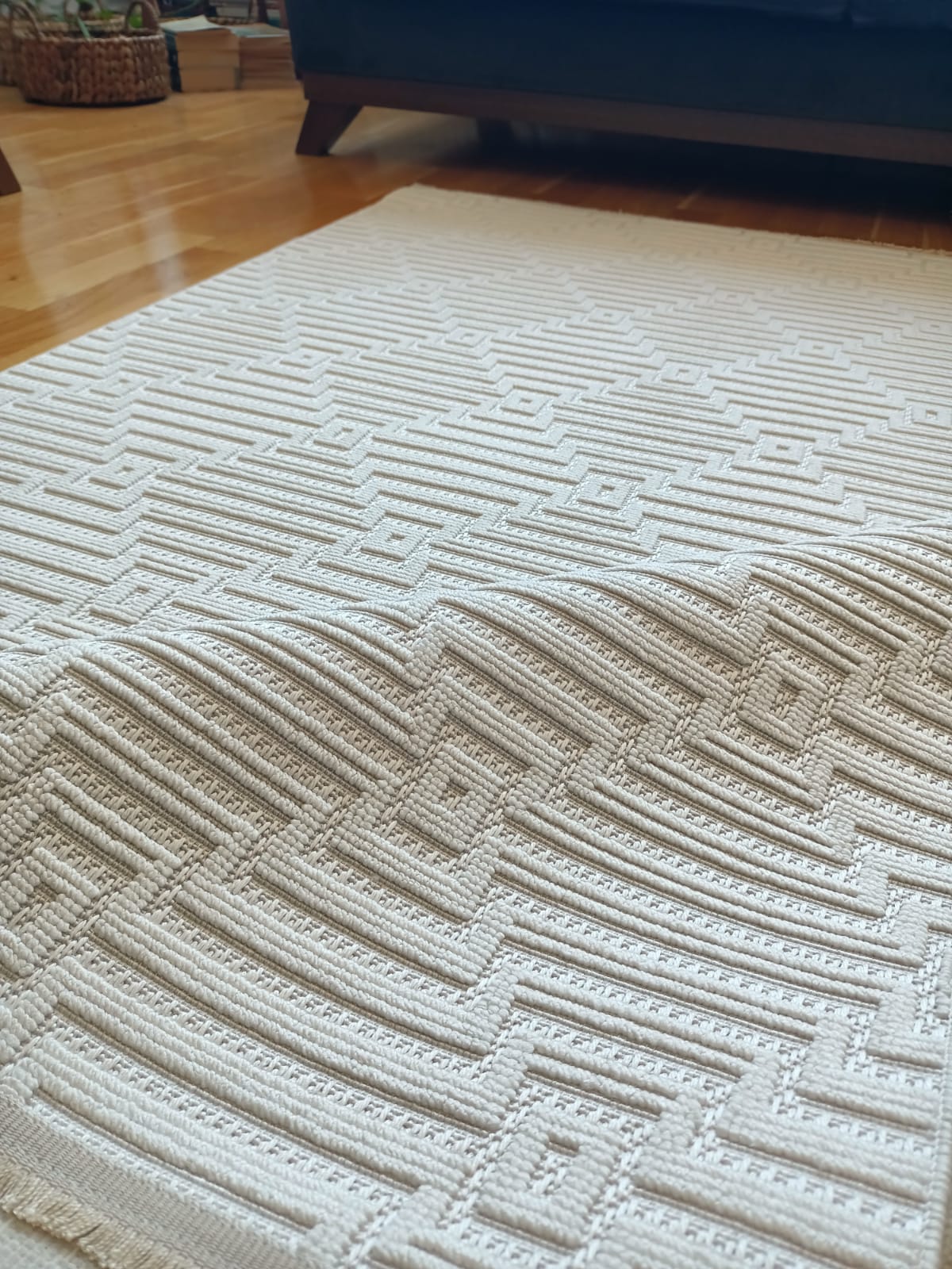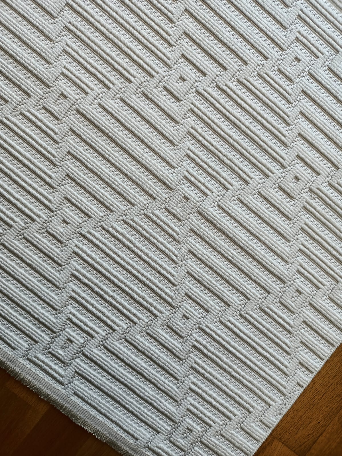 - Pamuk tabanlı yapısı ile konforlu bir dokunuş sunar ve ayaklarınızın altında yumuşaklık hissi sağlar.; - Düz saçak detayları, modern tasarımıyla mekanınıza şık bir görünüm kazandırırken aynı zamanda dayanıklılığı arttırır.; - Akrilik ve bambu karışımı materyali sayesinde uzun ömürlü kullanım vaat ederken, parlak kadife saten yüzeyiyle göz alıcı bir estetik sunar.; - Orta hav yüksekliği (6 - 12 mm), ideal yastıklama seviyesini koruyarak rahat adımlar atmanız için mükemmel bir zemin oluşturur.; - El dokuma üretim tekniği ile üretilmiş olması, her halının benzersiz ve otantik bir karakter taşımasını sağlar.; - Modern tema/stiliyle evinizin dekorasyonuna çağdaş bir hava katar; salon, koridor veya mutfak gibi farklı alanlarda kolayca uyum sağlar.; - Yıkanabilir özelliği sayesinde pratik temizlik imkanı sunarken, hijyenik ortamların korunmasına katkıda bulunur.; - Mutfak gibi yoğun kullanıma sahip alanlar için idealdir; leke tutmaz yapısıyla kolayca temizlenebilir ve uzun süre ilk günkü gibi kalır.